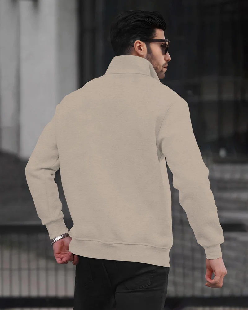 Men Zipper high Neck Beige Sweatshirt